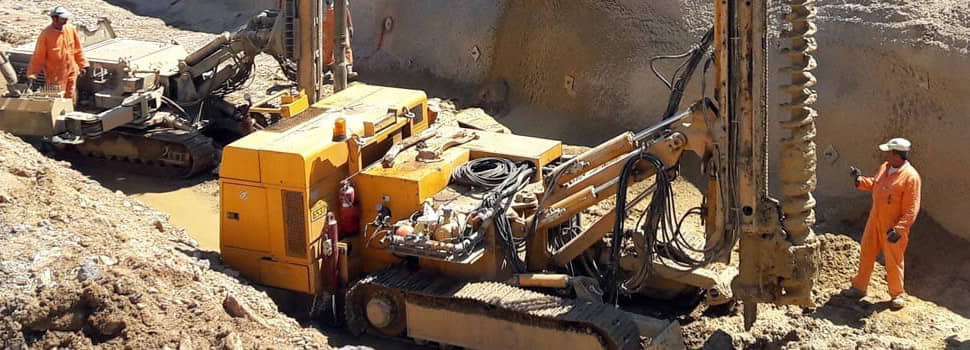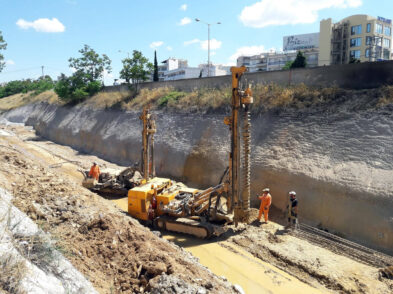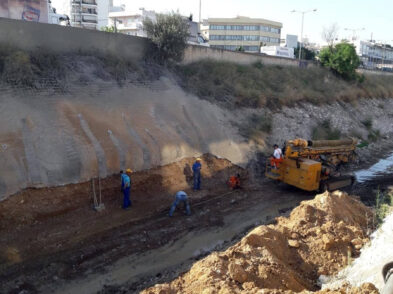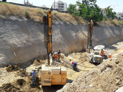 Η κατασκευή των εδαφοηλώσεων έγινε με χρήση αεροσυμπιεστή. Η διάτρηση των μικροπασσάλων Φ400 έγινε με  Continuous Auger. H μέθοδος του Continuous Auger βασίζεται στη διάτρηση και τη μεταφορά υλικού προς την επιφάνεια.