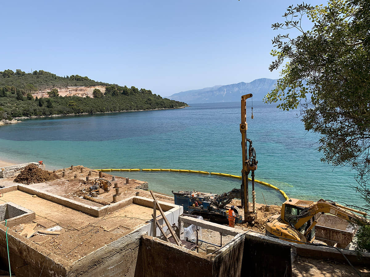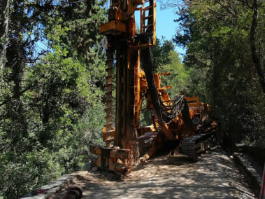 Η διάτρηση επιτυγχάνεται με περιστροφική μέθοδο και χρήση αρίδας και ολοκληρώνεται με χρήση υδραυλικής σφύρας (DTH) εντός του υγιούς βραχώδους υποβάθρου.