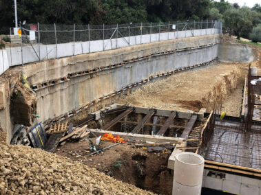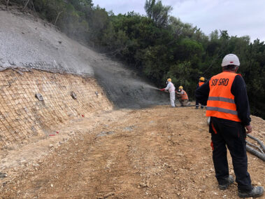 Οι εργασίες προστασίας πρανών εκσκαφής περιλαμβάνουν την κατασκευή ή μη μικροπασσάλων διαμέτρου 300χιλ. και μήκους σε συνδυασμό με προεντεταμένες ή παθητικές αγκυρώσεις και οπλισμένο εκτοξευόμενο σκυρόδεμα, σε εδαφικά ή βραχώδη πρανή αντίστοιχα, ενώ το βάθος εφαρμογής εκτείνεται στα 12 μ.